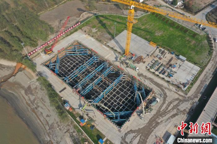无人机拍摄巢马铁路马鞍山公铁长江大桥主桥首个承台开始浇筑。 李骄阳 摄“我们承建的2标段全长5.6公里,施工内容包括大桥南岸在内的长1公里的跨江主桥以及长4.6公里江心洲引桥等。此次浇筑主桥承台为呈哑铃型结构,平面外轮廓3000多平方米,相当于7个篮球场大小,承台厚9.5米,未来将要承载306米高的主塔。”中交二航局巢马铁路2标项目负责人曲洪春介绍。“项目全员掀起大干60天热潮,以促进度为基础、抓质量为核心、保安全为前提、推环保为手段,保障首个承台的浇筑。”
