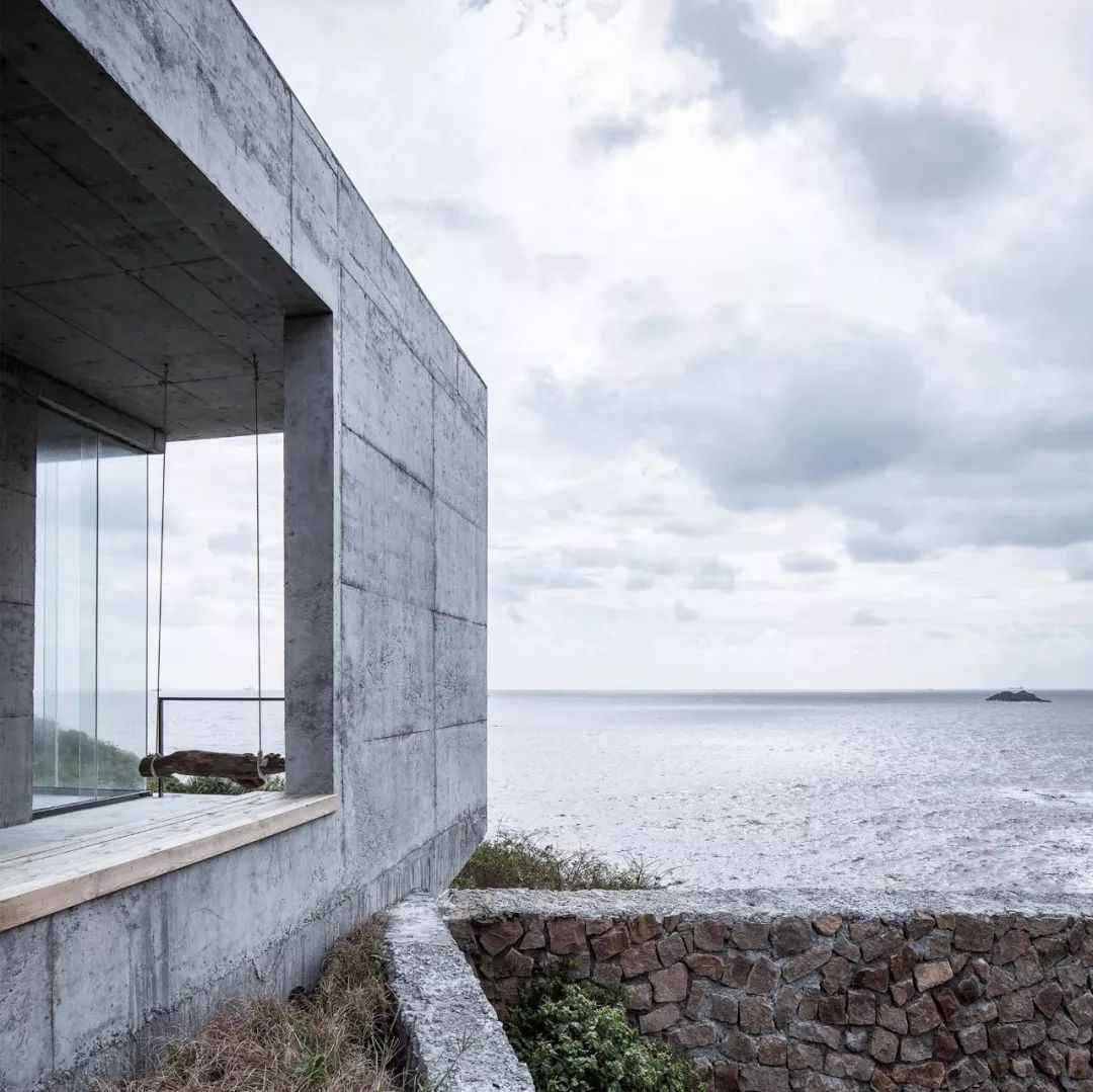 场地条件高低错落,海景风光如画,我们围绕着如何把海景引入室内,关心着房子里的人如何多角度的“看景”,考虑室内空间合理化,符合当代社交空间尺度。另外新房子用了钢筋混凝土为主要的结构,结构与空间完整统一,没有过多装饰,用混凝土作为构造与装饰,主要也是为了抵御海洋的极端气候所带来的侵蚀。