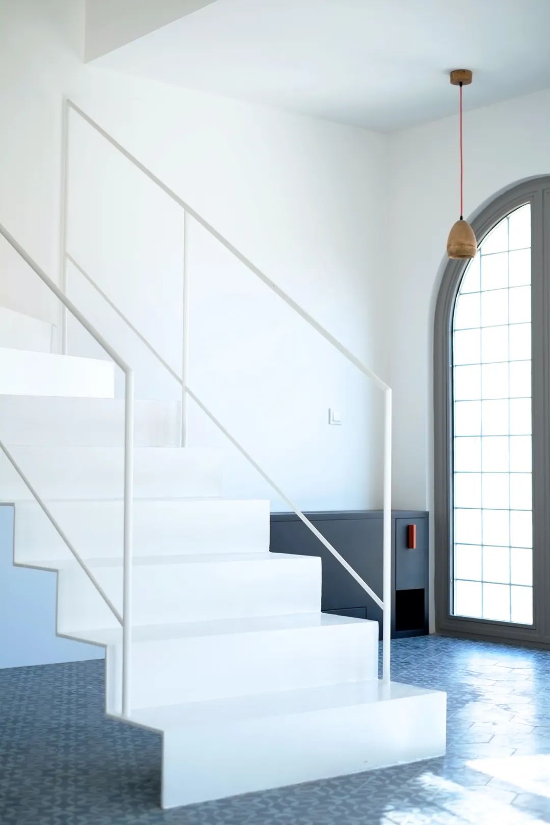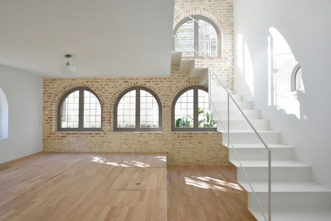 主建筑共有三层。每一层都是独立运作的,并各自与外部环境有着独特的互动,而每一层的内部也可以囊括不同的活动,以此激活各个空间所蕴含的感官体验和灵活的使用模式。三层楼的空间共同组合了一个曼妙的“和弦”组合,且每层所用的材料不仅强调了它们各自的独立性,也建立了它们彼此的联系。一层空间包含了主入口和一个为其中一位业主、也是艺术家所打造的艺术工作室。二层空间囊括了卧室、阳台、卫生间和多功能室。这一层的空间受到伊朗建筑中功能区划流动性的启发,因此多功能室也可以被转变为一个聚集休憩、起居、用餐和工作等功能的房间。三层空间则涵盖了起居室、厨房和另一个阳台。在内部,这三层空间由两个内部楼梯连接,它们彼此呼应,以此为住户提供了“倾斜”的视觉连接。