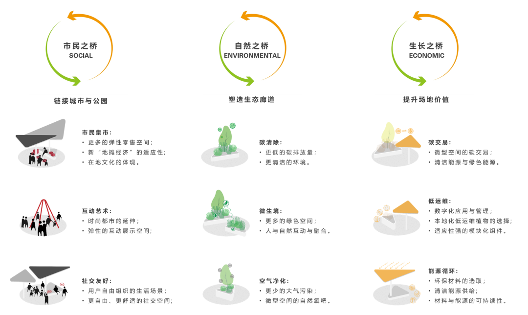 在传统使用功能之外,奥雅纳为桥梁赋予更多的经济、生态和社会价值,同时结合桥梁生命周期的各个阶段,落实了可持续发展的设计理念。