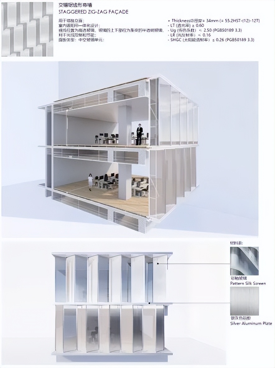 闪耀——玻璃幕墙采用折面形式,幕墙随光线角度的变化呈现出如钢铁般闪耀的质感,彰显永钢产品的极高品质。