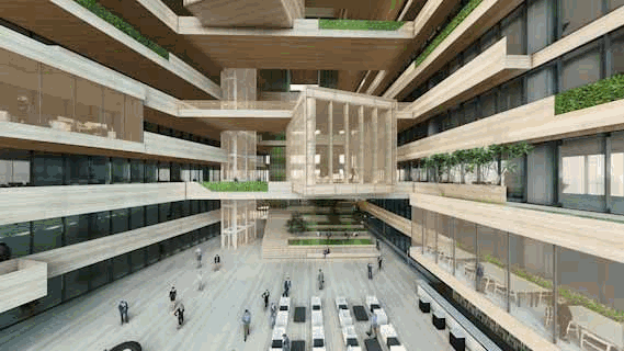 城市绿谷:以景观阳台形式营造层叠的城市绿谷,使城市界面更亲和,公共空间最大化。
