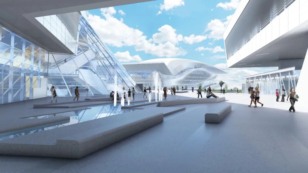 主入口厅连接博物馆广场,以透明的姿态欢迎访客进入。这里涵盖了博物馆的入口设施,包括售票处、问讯处、衣帽间、洗手间等各种功能。