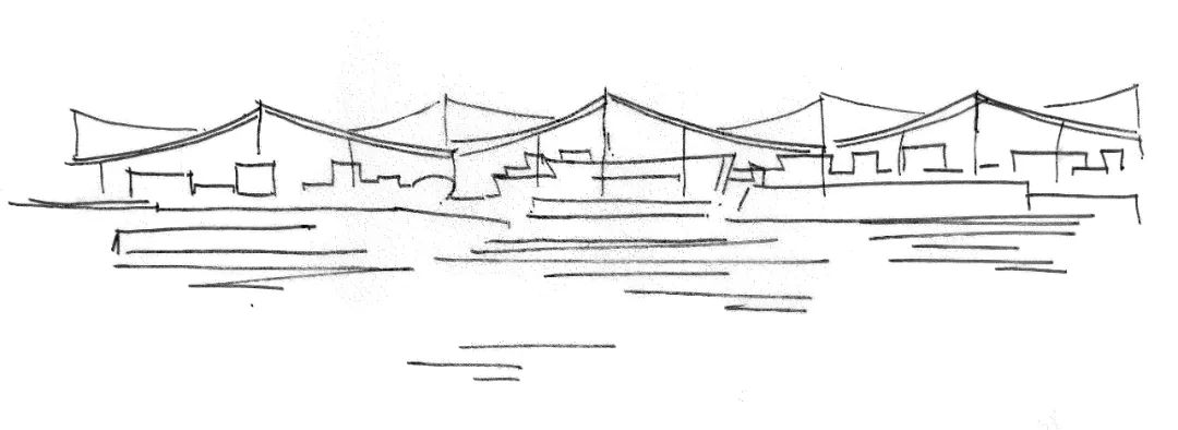 设计将丰富的公共活动场景置于一片轻盈的屋顶之下,屋顶起伏有致,舒展优雅,为建筑带来极高的辨识度,并与长江和城市的宏大场景产生对话关系。