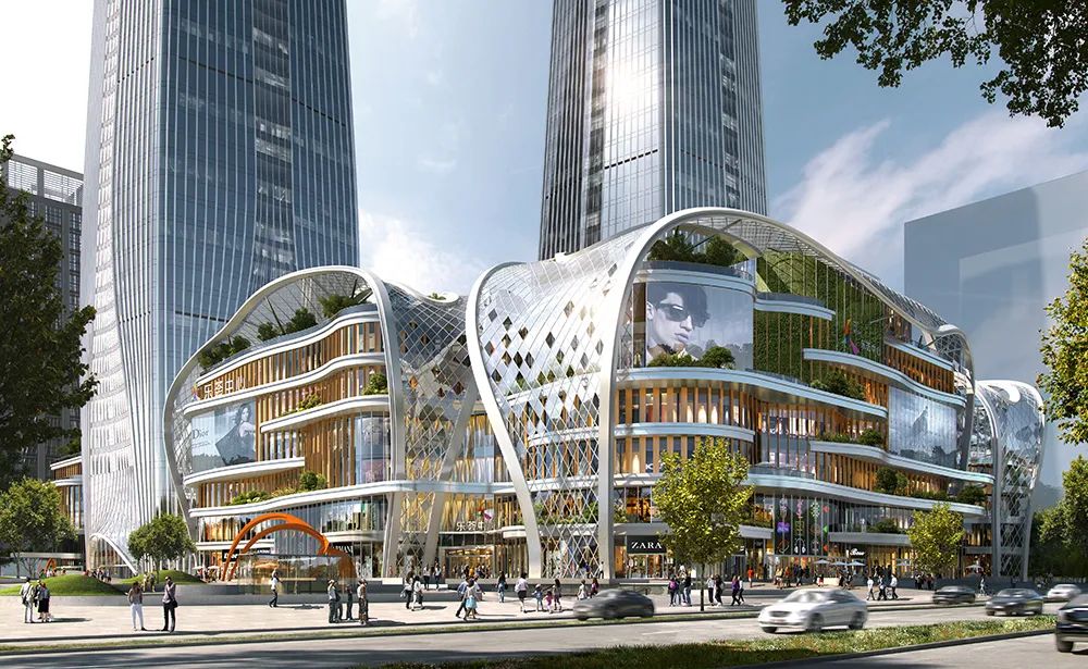 设计将自然融入城市结构,并从四季、花卉以及城市的山地地形中汲取整体布局灵感,以此构建裙楼公共空间与塔楼内部空间,并打造整体外立面与雨棚形态。