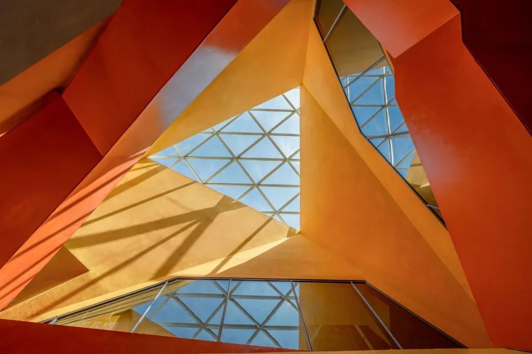 建筑师通过色彩、光线的设计,塑造中庭的活力与戏剧性。活泼的橘黄色系如同生长出的枝桠,从中庭延续至整座建筑的公共空间,包括入口的大台阶、露台、底层架空空间。它们与建筑外表的暖灰色调形成强烈对比,吸引街道上漫步的人群往里窥探一二。