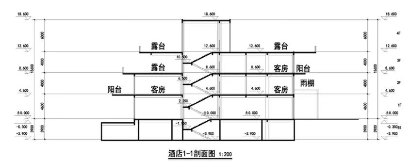 运动温泉康养酒店主体建筑采用屋面叠峦飞扬的屋面形式,与山体天际线交相辉映,屋顶架空以及建筑平台的架空,减少土地破坏同时又营造了区位空整体通透,立面采用了木格栅、透光玻璃及局部竹钢作造型,儒风雅韵,光影变幻。