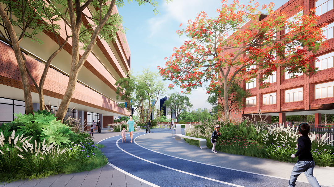 在具体设计层面,AUBE欧博设计紧扣“多维活力运动公园、低碳国际慢活街道、臻享山海温润社区、多元复合教学场景”四大功能片区,将山海绿意无限延伸,多维回应海湾记忆塑造自然惬意的视听感观,以多变的景观体验缝合城市,将低碳生态主张融入社区生活之中,塑造高品质的生态、活力国际化社区。