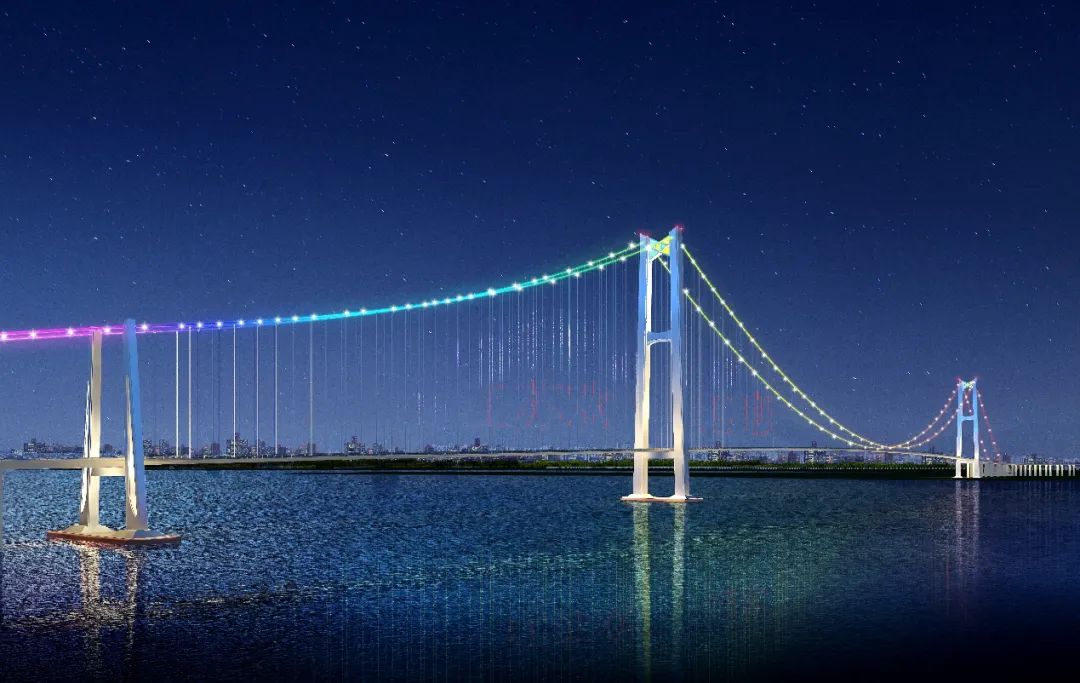 为突出桥塔顶端三角形交错的横梁造型,烘托长三角一体化主题,方案将主跨为2300米的主通航孔桥的中横梁设计为简约的横梁造型,使桥塔主题更明确,使桥塔顶端更具标志性。