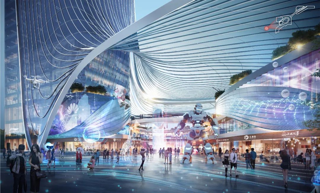 轨道交通和活力商街为片区超高层酒店公寓、TOD社区提供交通与生活配套,各种业态空间相互穿插,联系紧密。合理安排场地功能,满足不同功能的使用和活动需求,交通系统考虑周全,在不同城市界面结合开放空间设置人行出入口。景观绿化空间张弛有度,竖向设计结合现状条件合理组织,有效控制土方成本。